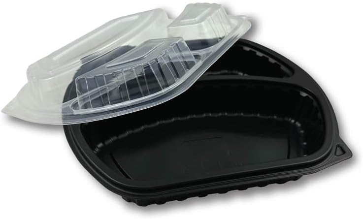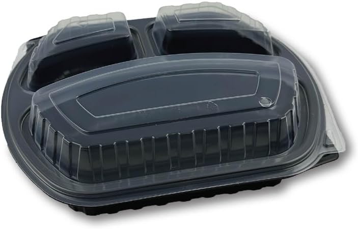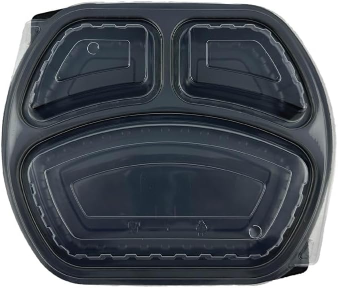 Plastik Kapaklı Yemek Kabı Mikrodalga Kabı 3 Bölmeli 50 Adet