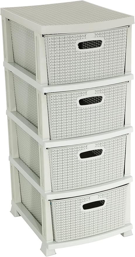 Plastik Örgü Komidin (4 Çekmeceli Sebzelik) Kirli Beyaz