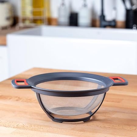 TAM SÜZME PERFORMANSI: Yükseltici ayaklar, süzgeci lavabo içinde sabit tutar ve suyun tamamen akmasını sağlar – tezgahınız temiz kalır!