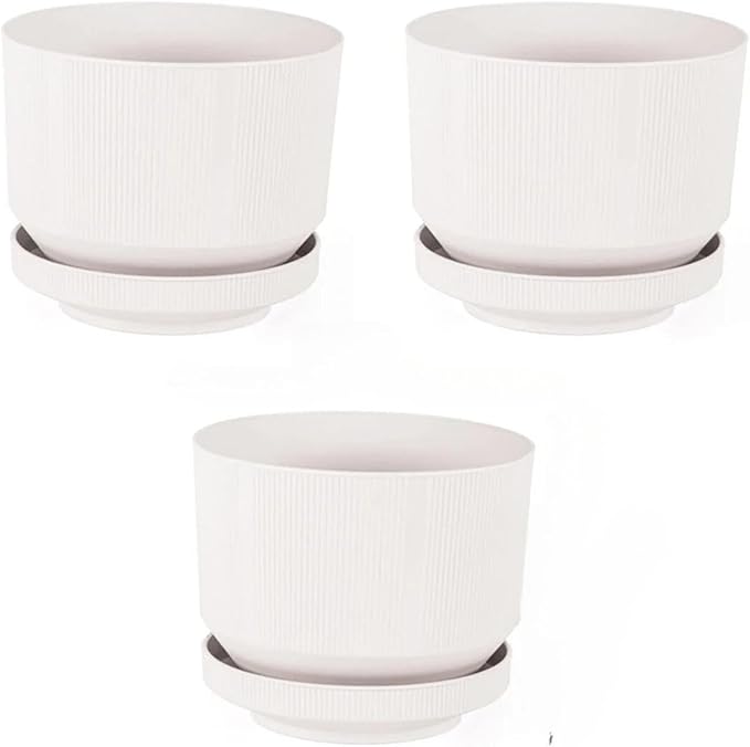 Plastik Tabaklı Saksı 3 Adet Pastel Beyaz, 1,7lt