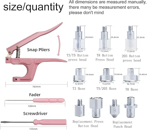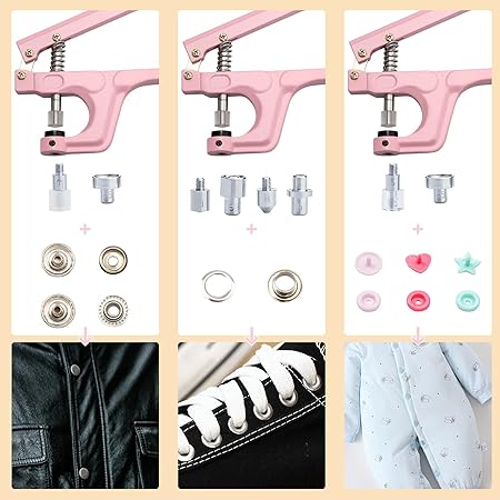 Plastik ve Metal Çıtçıtlı Düğmeler, Çıtçıtlı Pense Seti, 300 Set Plastik ve Metal Çıtçıtlı Düğmeler Dikiş ve El İşi için (Pembe)
