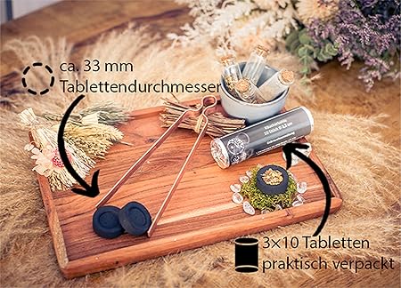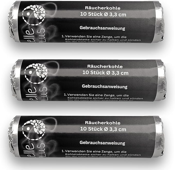 Plus Tütsü kömürü Ø 33 mm | odun kömürü tableti hızlı yanabilir | 30 adet (3 x 10)