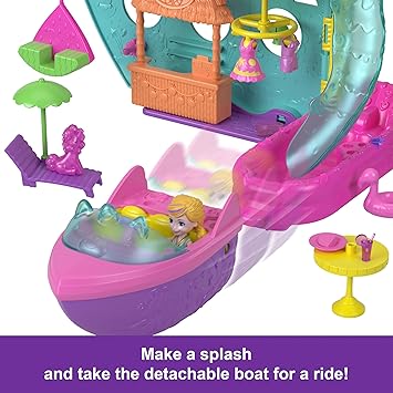 İyi yolculuk! Hayal gücü, bir adet 7,62 cm oyuncak bebek ve iki katlı eğlence ile bu Polly Pocket Unicorn Dream Cruise’da yelken açacak!