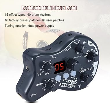 PockRock Taşınabilir Gitar Çok Efektli İşlemci Efekt Pedalı 15 Efekt Türü 40 Davul Ritmi Güç Adaptörüyle Ayarlama Fonksiyonu