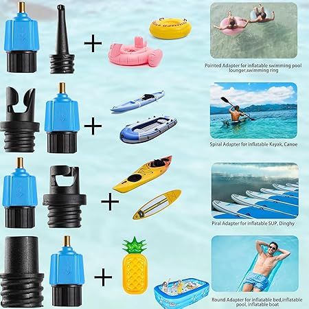 Paket içeriği: 1-Sup valf adaptörü, 1 metal hava pompası adaptörü ve 4 şişirme başlığı tasarımı. Hafif ve taşıması kolay şişme kiti tüm ihtiyaçlarınızı karşılayabilir.