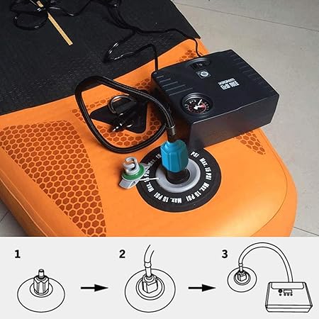 Kolay şişirme: Sup valf adaptörünün değiştirilmesi kolaydır ve çok yüksek şişirme verimliliğine sahiptir. İhtiyaçlarınıza göre uygun şişirme arayüzünü seçebilir ve 5 ila 10 dakika içinde önerilen psi değerine ulaşmak için bir kompresör veya lastik şişirici kullanabilirsiniz. Pompayı ne kadar büyük kullanırsanız şişirme hızı o kadar hızlı olur.