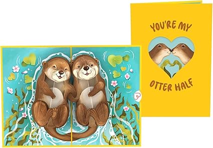 Pop-Up kart You’re My Otter Half – Kadınlar ve Erkekler için 3D Aşk Kartı (Doğum Günü Kartı, Düğün, Yıl Dönümü) – Sevimli Aşk Beyanı, Kız Arkadaş ve Erkek Arkadaş için Seni Seviyorum Kartı