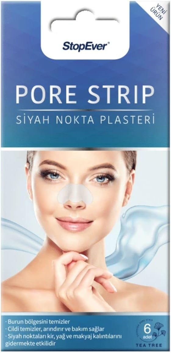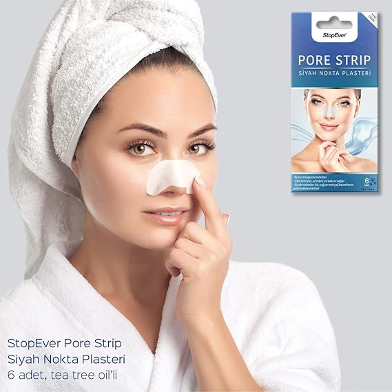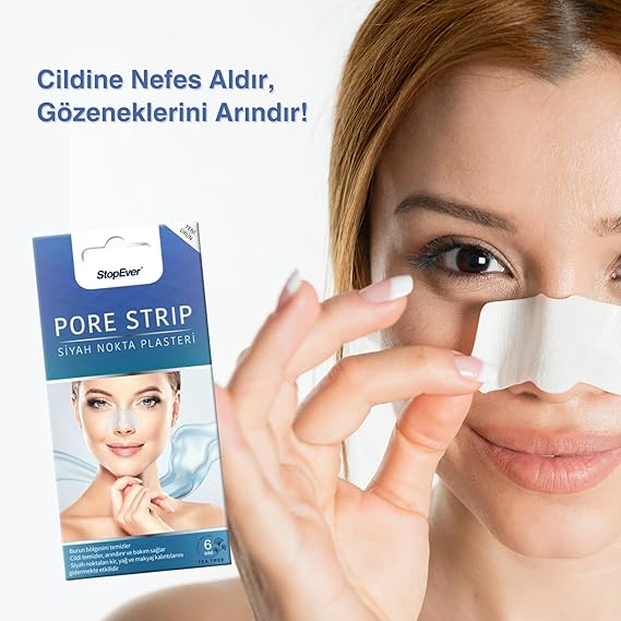 StopEver Pore Strip, Siyah Nokta Plasteri, kolay kullanımı ve etkili formülüyle burun bölgesini siyah noktalardan, yağ, kir ve makyaj artığı gibi istenmeyen kalıntılardan arındırmaya yardımcı olur