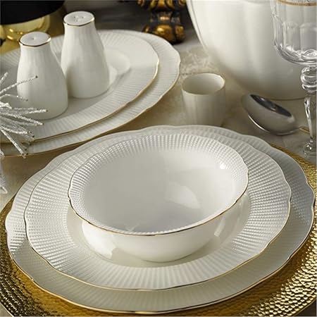 12 Adet 27 cm servis tabağı, 12 Adet 23 cm çukur tabak, iki adet 24 cm kayık tabak, bir adet 28 cm kayık tabak