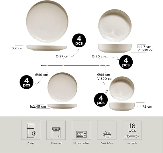 Porselen Moderna 16 Parça 4 Kişilik Yemek Takımı Krem