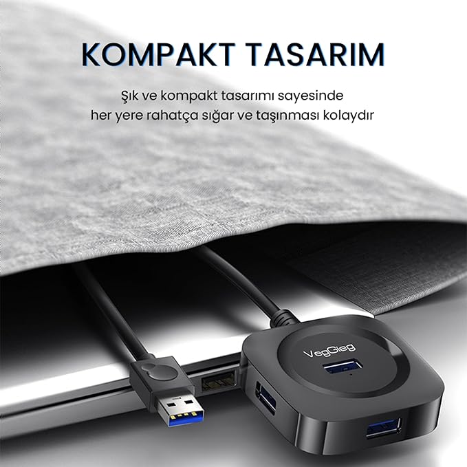 VegGieg USB 3.0 4 Portlu Çoklayıcı Hub Beyaz, USB üzerinden bilgisayarınıza 4 adet USB 3.0 bağlantı noktası eklemenize olanak tanır. 5Gbps veri aktarımı sayesinde gecikme olmadan bağladığınız cihazları kullanabilirsiniz.