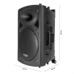 – PORT15UHF-BT – Taşınabilir hoparlör, 15 inç (38 cm)/maks. 800W, 2 mikrofonlu (VHF), uzaktan kumanda ve koruyucu kılıf – Bluetooth, USB, SD – 6-8 saat bağımsız çalışma süresi