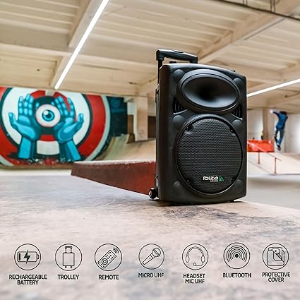 Ses: IBIZASound ses kalitesiyle donatılmış olan bu taşınabilir sistem vazgeçilmeziniz olacak. 400W RMS, maksimum 800W güce sahip olan PORT15UHF-BT, mükemmelliğin ses sisteminde vücut bulmuş halidir.