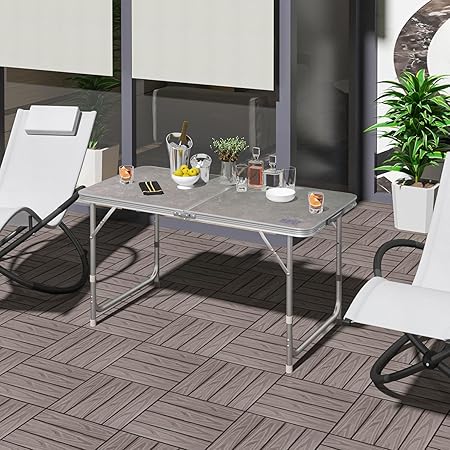 Portatif Kamp Masası, 2 Yükseklik Ayarlı, Katlanır Piknik Masası, Kolay Taşınabilir Alüminyum Masa – 90×50 – Hareli Ceviz