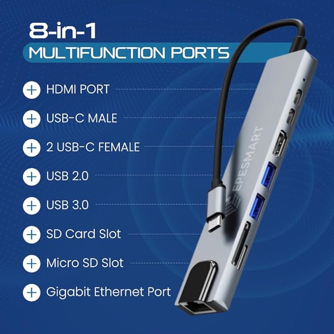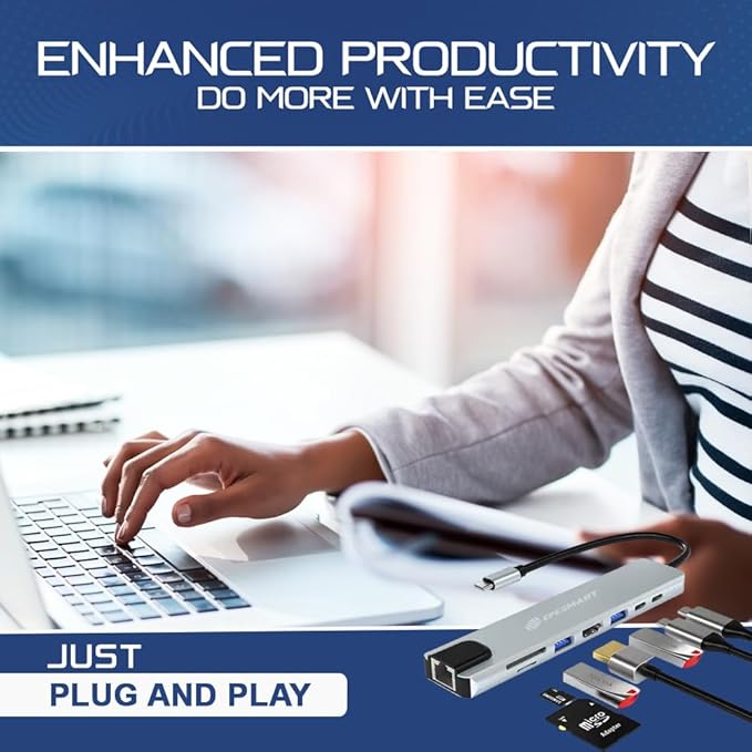 ✅ Gelişmiş Verimlilik: İster büyük bir sunum üzerinde çalışıyor olun, ister fotoğrafları düzenleyin, ister oyun oynayın, 8’i 1 arada hub’ımız size daha fazlasını kolaylıkla yapmanızı sağlar