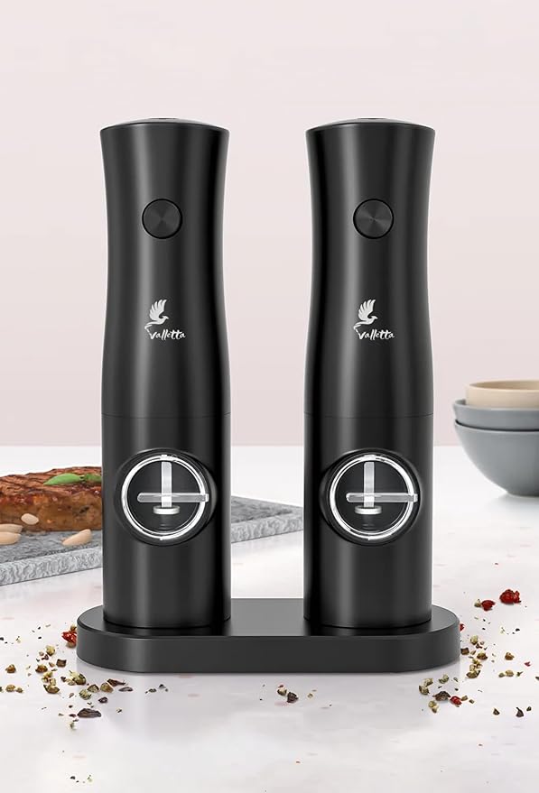 Portofino 2’Li Standlı Pilli Tuz Karabiber Değirmeni Otomatik Baharat Öğütücü Siyah