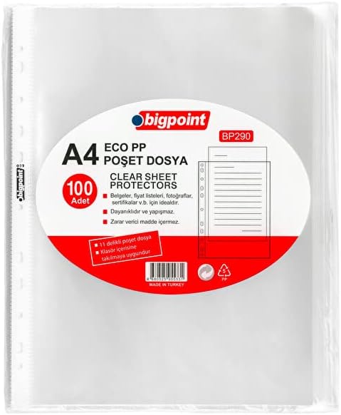 | Poşet Dosya, Klasör içi Kullanıma Uygun 60 Adet A4 Kapasiteli Eco Şeffaf Dosya, 100’lü Paket
