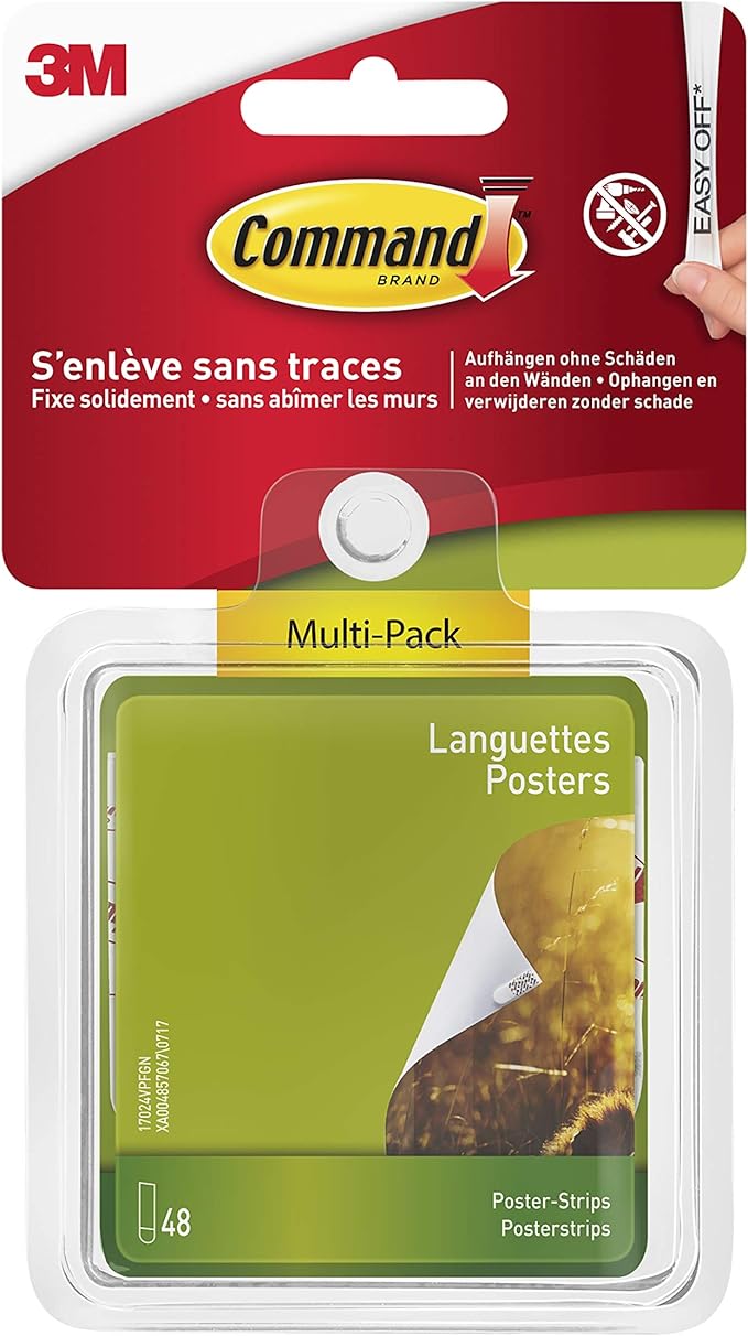 Poster şeritleri, 48 küçük yapışkan şerit – Posterleri, afişleri, takvimleri veya resimleri çerçevesiz asmak için ideal