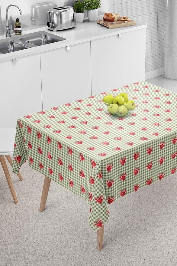Pötikare Çilek Desenli Yeşil Masa Örtüsü, Sofra Bezi, Piknik Örtüsü Yeşil 140 x 200 riva00112