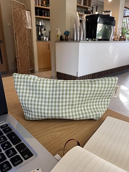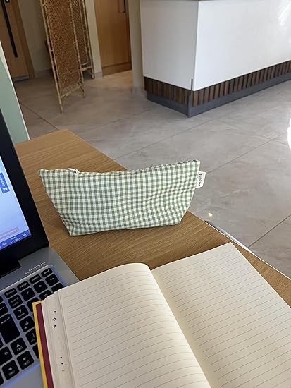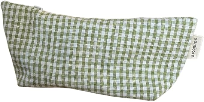 Pötikareli Yıkanabilir Fermuarlı Tek Gözlü Bez Kalemlik Kalem Kutusu Cüzdan Makyaj Çantası Bez Kalem Kesesi (Fıstık Yeşil)