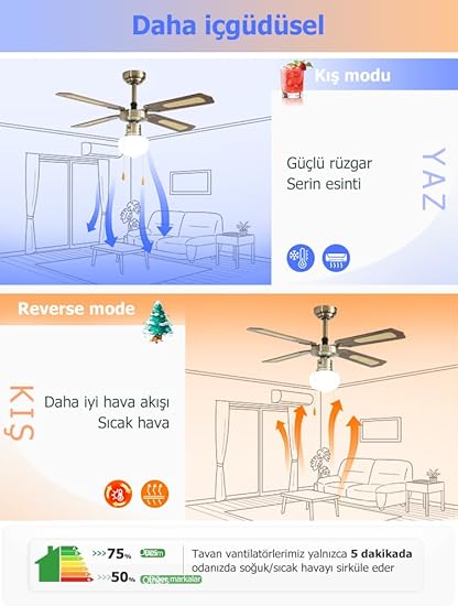 MEVSİMSEL MODLAR: Yaz Ayları için Serin Esinti ve Kış Ayları için Ters Mod ile Sıcak Hava Sirkülasyonu Sağlama Özelliği