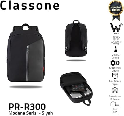 PR-R300 Modena 15.6” WTX Pro Su Geçirmez Kumaş Macbook, Mac Air Laptop SırtÇantası-Siyah