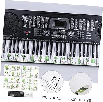 Klavye çıkartmaları: yapıştırması kolay, yırtılması kolay, yırtıldıktan sonra tutkal kalmaz ve piyanonuza zarar vermez.