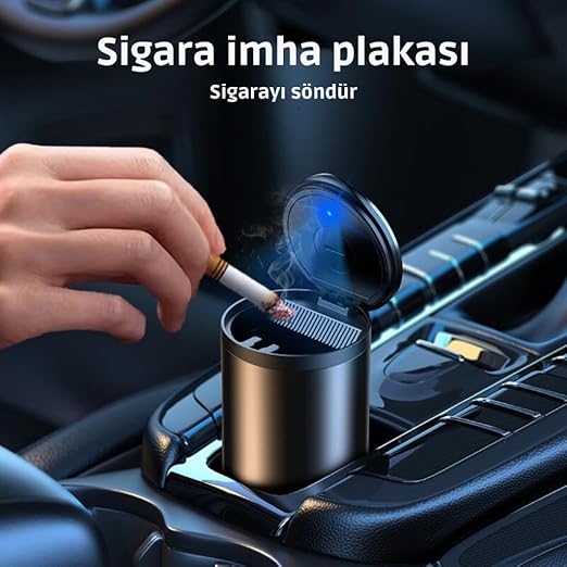 Premium Car Ashtray Led Işıklı Alüminyum Taşınabilir Kapaklı Araba Küllük Kül Tablası Kokusuz