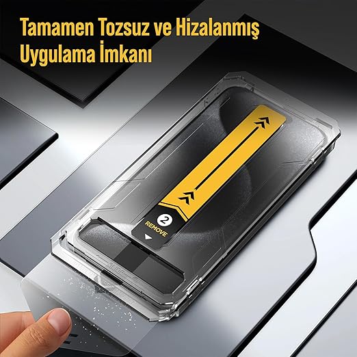 Uygulaması çok kolay.Yalnızca, çerçeveyi yerleştirin, toz toplama filmini çekin ve koruyucu camı uygulayın.Yüksek kaliteli yapışkan katmanı ile, baloncuksuz uygulama imkanı.Bu sayede uygularken ortaya çıkabilecek uygulama sorunlarını minimuma indirir