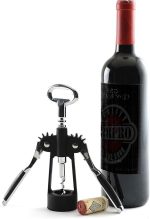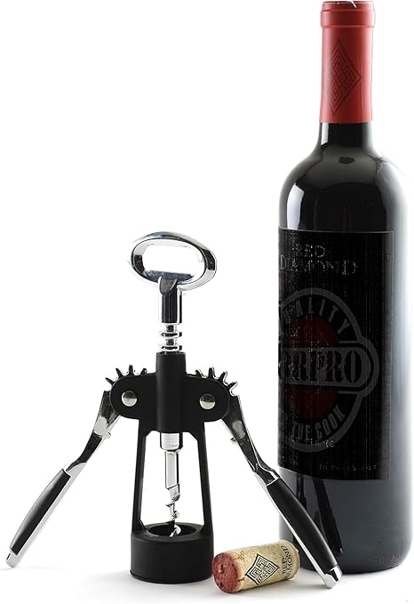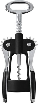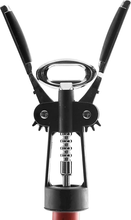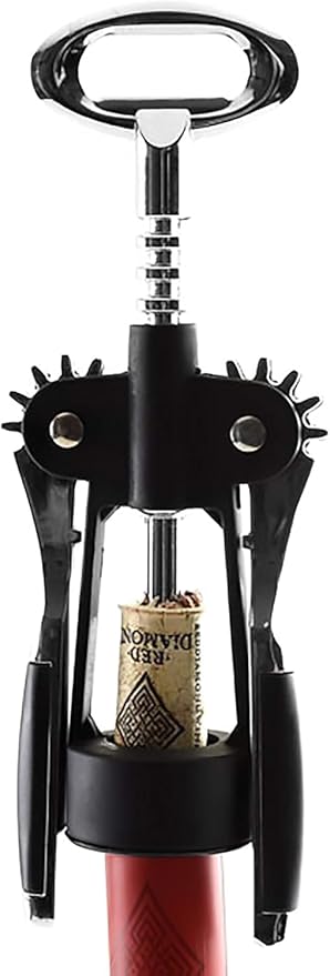 Premium Kanatlı Şarap Açacağı Tirbuşon, Siyah Metal Gövde, Ergonomik Tasarım
