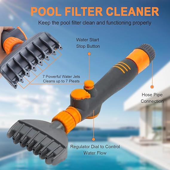 Zamandan tasarruf edin: Temiz su için kartuş temizleme aleti ile havuz filtrenizdeki kalıntıları ve kiri kolayca temizleyin. Bu havuz filtresi hem yer üstü hem de tek katlı havuzlar ve spa ve jakuziler için uygundur. Havuz filtresini temiz tutmak ve düzgün çalışması için farklı durumlarda kullanılabilen çok yönlü bir araçtır.