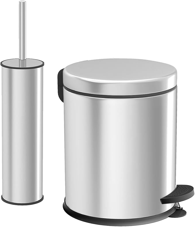 Premium Serisi Şık Tasarım Paslanmaz Çelik Çöp Kovası ve WC Fırçası 2 ‘Li Banyo Seti