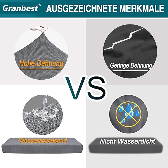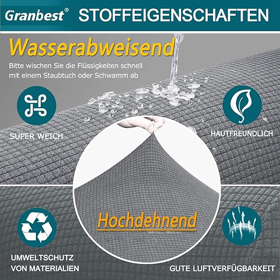 ÖZEL: Kanepe için Granbest koltuk minderi kılıfı, kanepenizi yanlışlıkla dökülmelere ve günlük lekelere karşı koruyabilen en modern su geçirmez teknolojiden yapılmıştır. Çocuklu ve evcil hayvanlı evler için iyi bir seçim. Sıcak uyarı: Tamamen su geçirmez değildir (oturma minderindeki dökülmeler hemen çıkarılmalıdır).