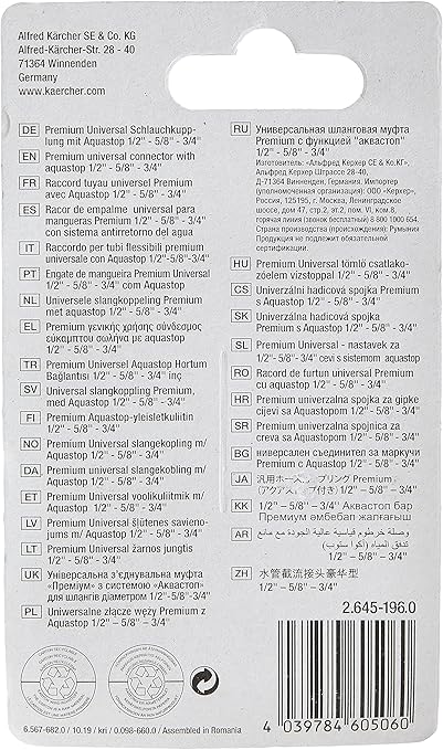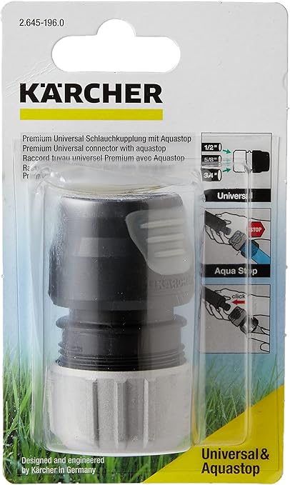 Karcher’in Aqua Stop’lu yüksek kalite premium üniversal hortum bağlantısı ile bağlamak, ayırmak ve onarım kolaylaştırıldı