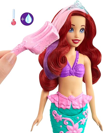 Çok sevilen Disney animasyon filmi Küçük Deniz Kızı’ndaki karakterden esinlenilerek tasarlanan Rengarenk Ariel bebeğin kuyruğunun ve saçının rengi değişir