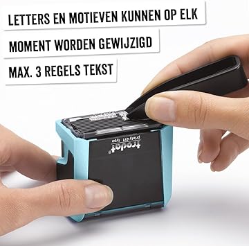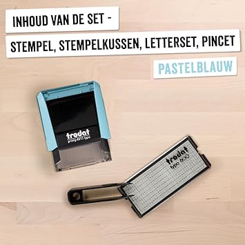 Printy 4911 damga seti, pastel mavi, kendiniz koymanız için – 3 metin satırı, baskı 38 x 14 mm, Almanca, cımbız, ıstampa dahil, siyah & harf ve sayı seti tek boyutta
