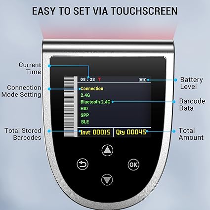 Dijital ayar ekranı ve tuş takımı ile kolay kullanım sağlayan barkod tarayıcı
