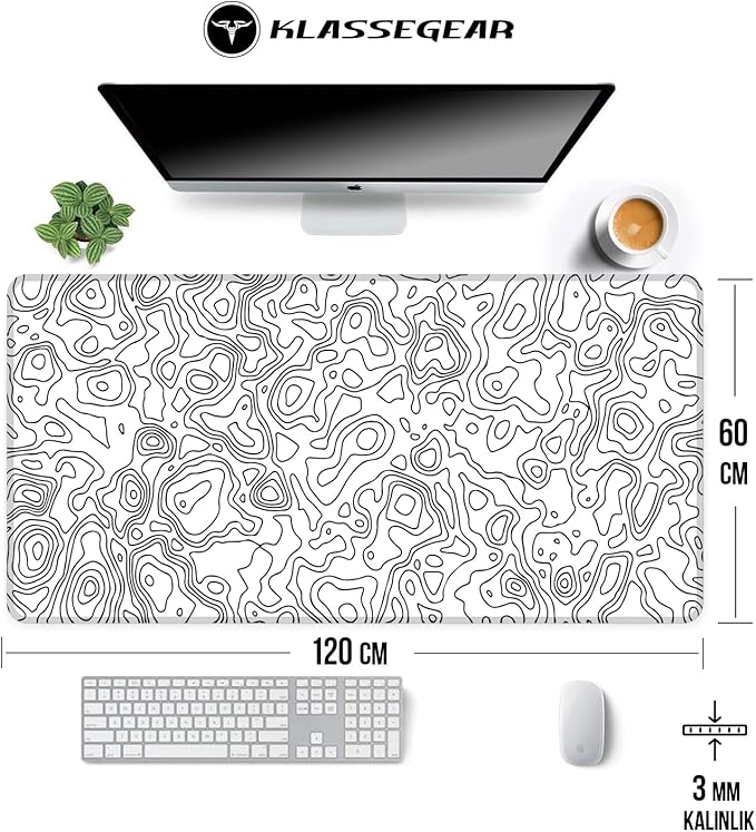 Pro – 5 Farklı Model Dikişli Kenar 120×60 cm Oyuncu Gaming Mouse Pad (White Map Lines)