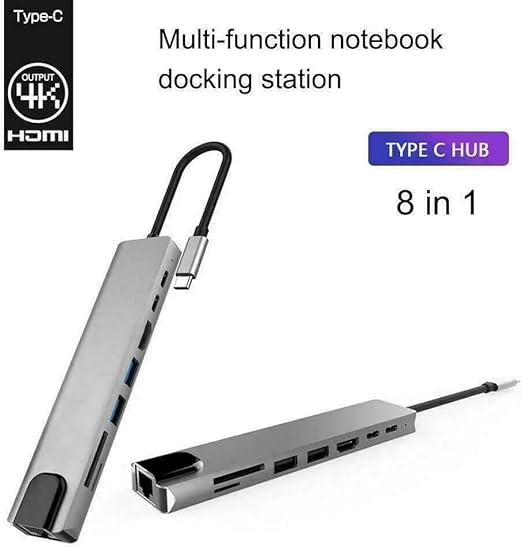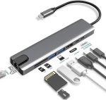 Pro Air İçin USB Type-C Hub Dönüştürücü 8 in 1 Çoklayıcı – HDMI, 2 Adet USB 3.0, 2 Adet USB C, SD/MicroSD, Ethernet – Çevirici 8li Port USB C Adaptör Bağlantı Noktası Ara Kablo