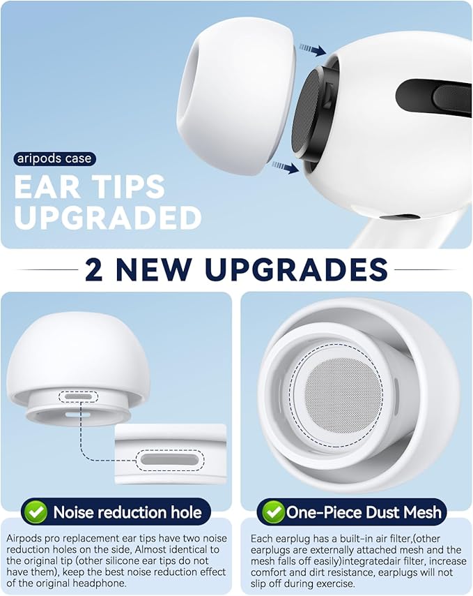【Mükemmel Gürültü Azaltma Fonksiyonu】Airpods pro ve Airpods pro 2. yedek kulak uçlarının yan tarafında iki gürültü azaltma deliği vardır, Orijinal uçla neredeyse aynıdır (diğer silikon kulak uçlarında yoktur), bu da gürültüyü azaltan gürültüyü azaltabilir orijinal kulaklığın en iyi gürültü azaltma etkisi;