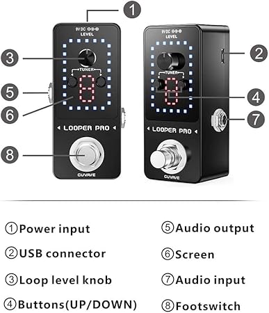 PRO Gitar Döngü Pedalı 9 Döngü Toplam 40 Dakika Süresi Sınırsız Overdub Dahili Tuner Fonksiyonu Ekran