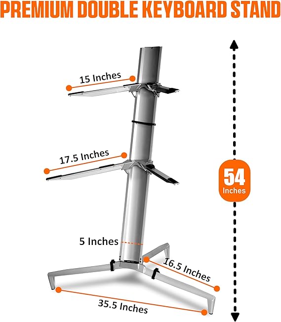 ✔️ İki Katmanlı Parlaklık: Bu çift klavye standı, katmanlı, çok boyutlu müzik yaratma potansiyelinizi ortaya çıkaran bir değil, iki klavyeyi barındıracak şekilde üretilmiştir. Klavyeciler, piyanistler ve sentezleyici meraklıları için mükemmel bir arkadaştır.