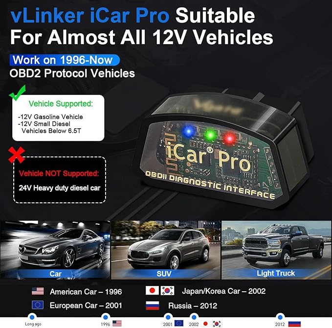 Uygulama Uyumu: vLinker iCar Pro Bluetooth Düşük Enerji cihazı, BimmerCode, BimmerLink, Car Scanner, Shift OBD, AlphaOBD, OBD Fusion, OBD Jscan, Carista, Torque gibi en popüler OBD uygulamalarıyla çalışır ve iPhone veya Android telefon/tabletinizi gelişmiş bir araç tarama aracına dönüştürür. Dikkat: Uygulama Pro Fonksiyonları Abonelik Ücretleri Gerektirir (Ücretsiz Değildir).