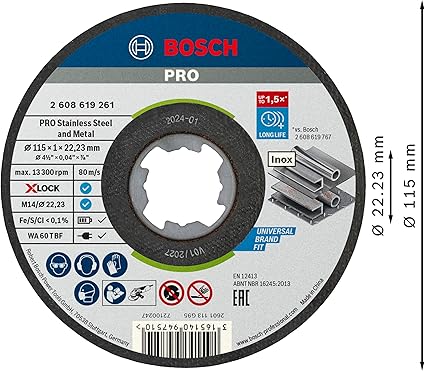 Professional 10 Adet Düz Kesme Diski Standart (Inox, X-LOCK, Ø115 mm, Delik Çapı: 22,23 mm, Kalınlık: 1 mm), Ø 115 mm