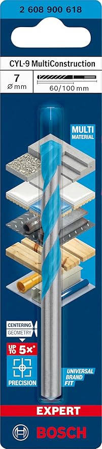 Professional 1x EXPERT CYL-9 MultiConstruction Delme Uçları (Beton, Yumuşak döşemeler, Çelik, Yumuşak ahşap, Plastik, Ø 7,00×100 mm, Aksesuar Darbeli Matkap/Vidalama)