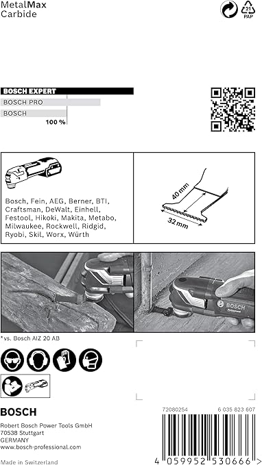 Teslimat kapsamı: Bosch Expert MetalMax AIZ 32 AIT çok amaçlı aletler için yaprak, 40 x 32 mm