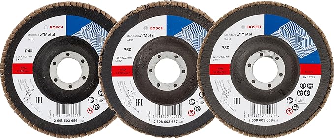 Professional 3 Adet Flap Disk Seti X431 Standard for Metal, Çelik ve Paslanmaz Çelik Taşlama için, Düz, 125 mm, Kum Kalınlığı 40/60/80, Küçük Avuç Taşlama Makineleri için Uygundur