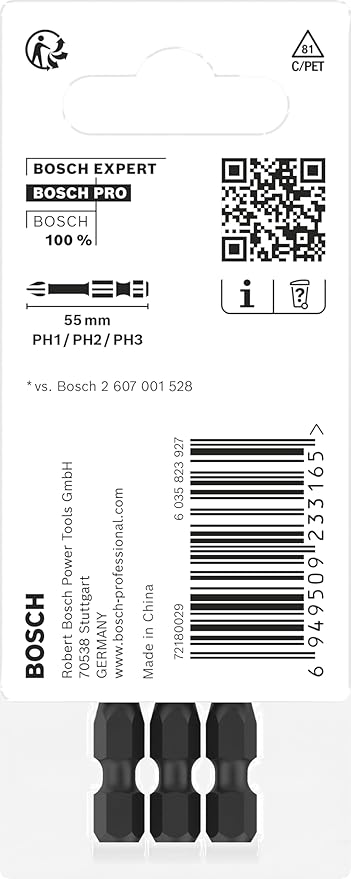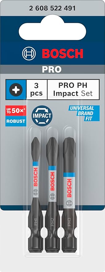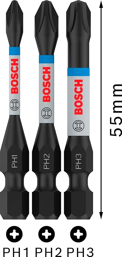 Teslimat kapsamı: 3 x Bosch Professional tornavida ucu PH Power Bit – Uzunluk 50 mm, altıgen şaft