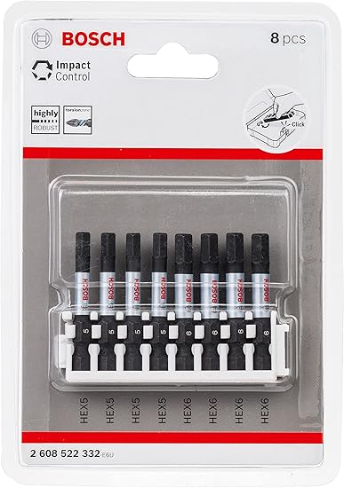Professional Accessories 8 parçalı tornavida ucu seti altıgen (Impact Control, 8 x PZ2 uç – Uzunluk: 50 mm, Pick and Click, darbeli matkap aksesuarı