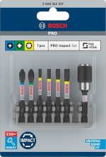 Professional Accessories Accessories 7 parçalı tornavida ucu seti (Impact Control, T/PZ/PH uçlar – Uzunluk: 25 mm, evrensel tutucu Quick Release, Pick and Click, darbeli matkap aksesuarı)